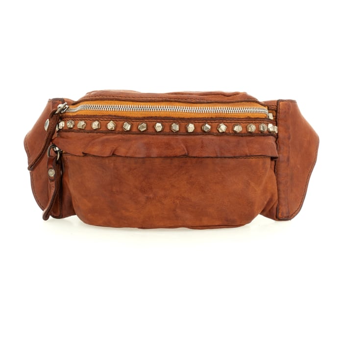 Marsupio Betulla in pelle di vacchetta color cognac con borchie