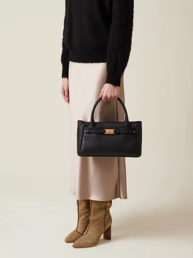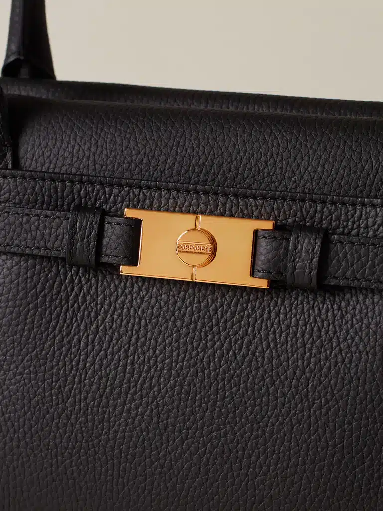 - Cinturino impreziosito da placchetta vite su tasca esterna chiusa con magnete invisibile
