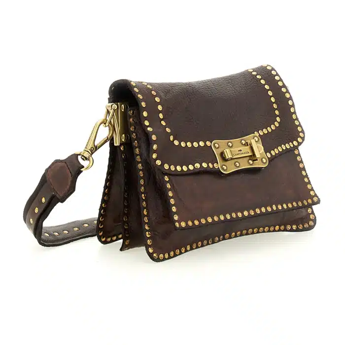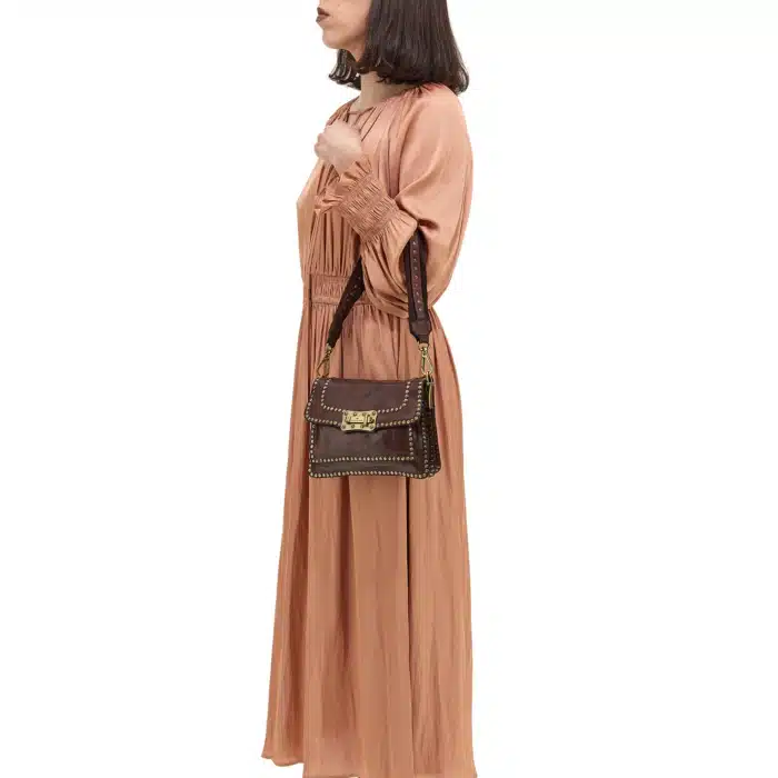 Borsa a tracolla “AGNESE” in pelle di vacchetta tinta in capo con borchie