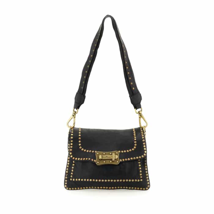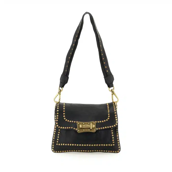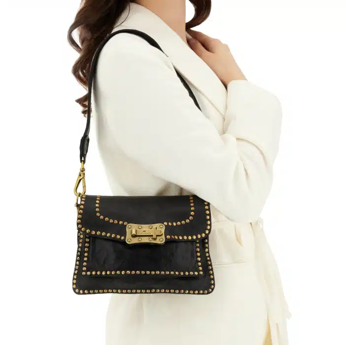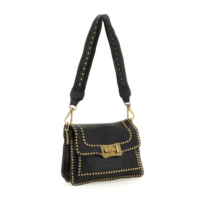 Borsa a tracolla “AGNESE” in pelle di vacchetta tinta in capo con borchie