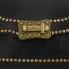 • Realizzato in pelle di vacchetta naturale tinta in capo con rivetti e spallaccio in pelle con rivetti
