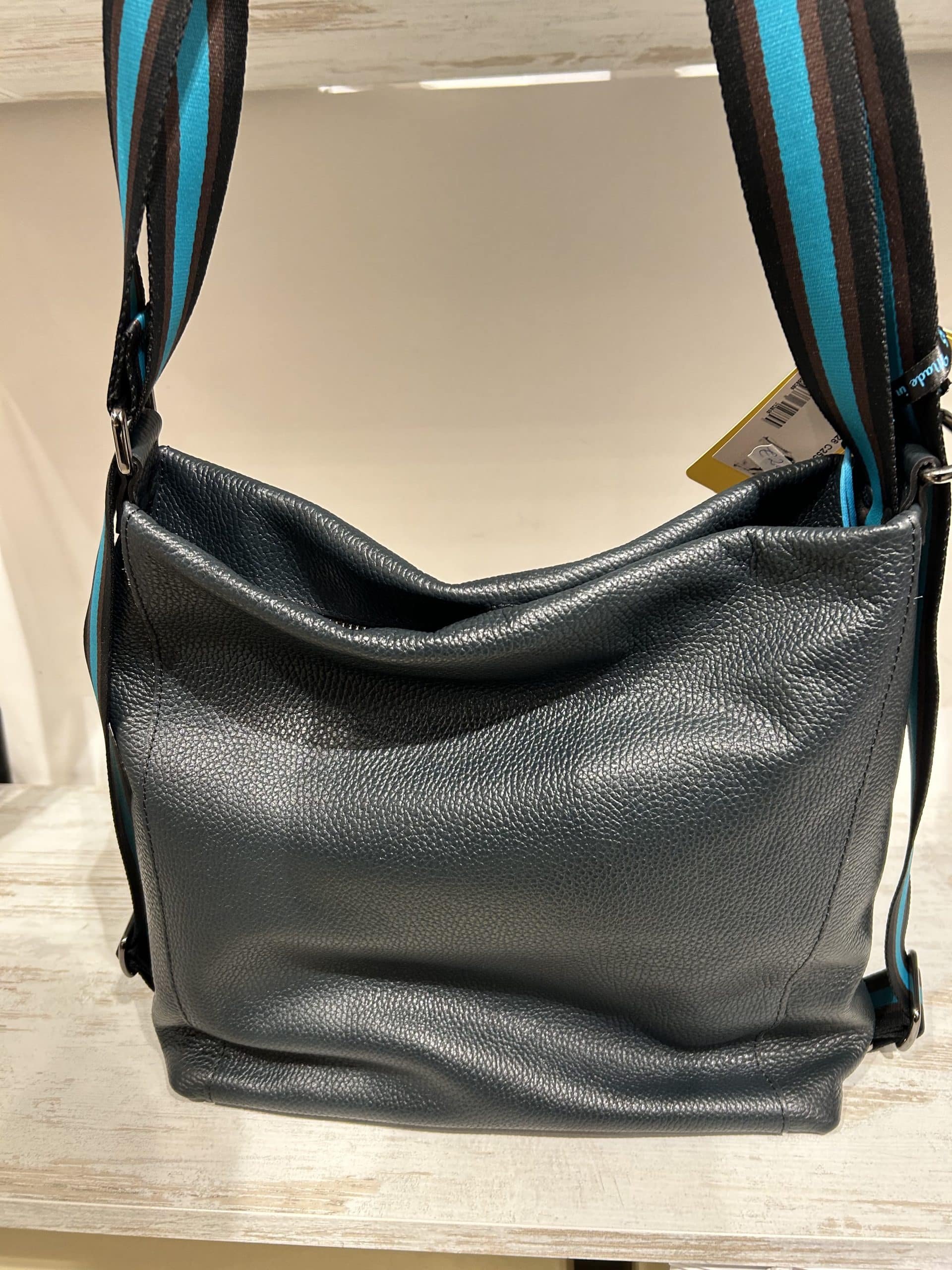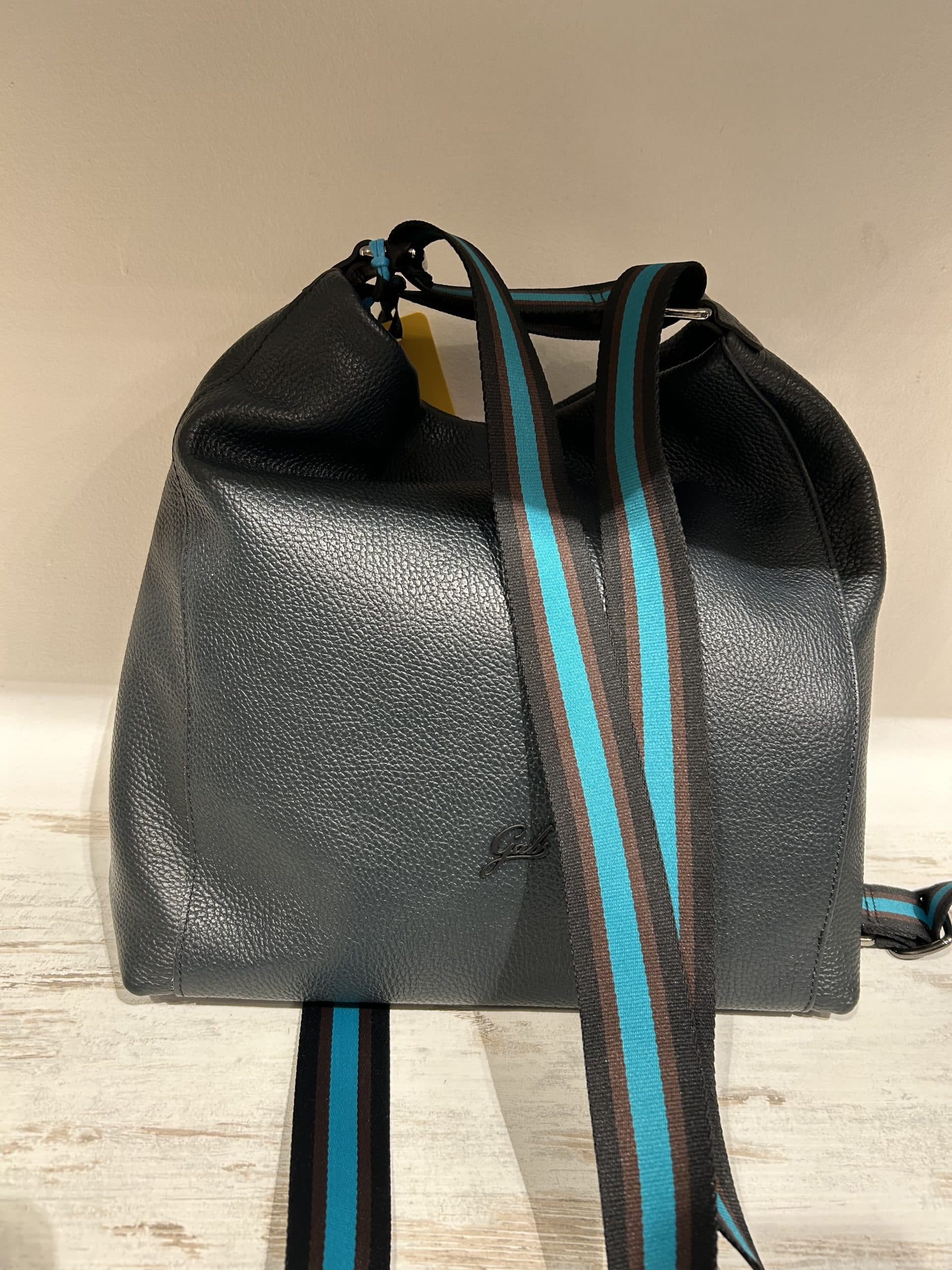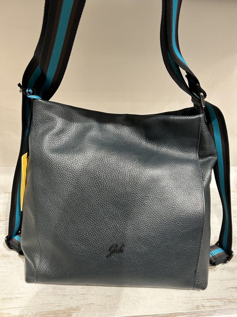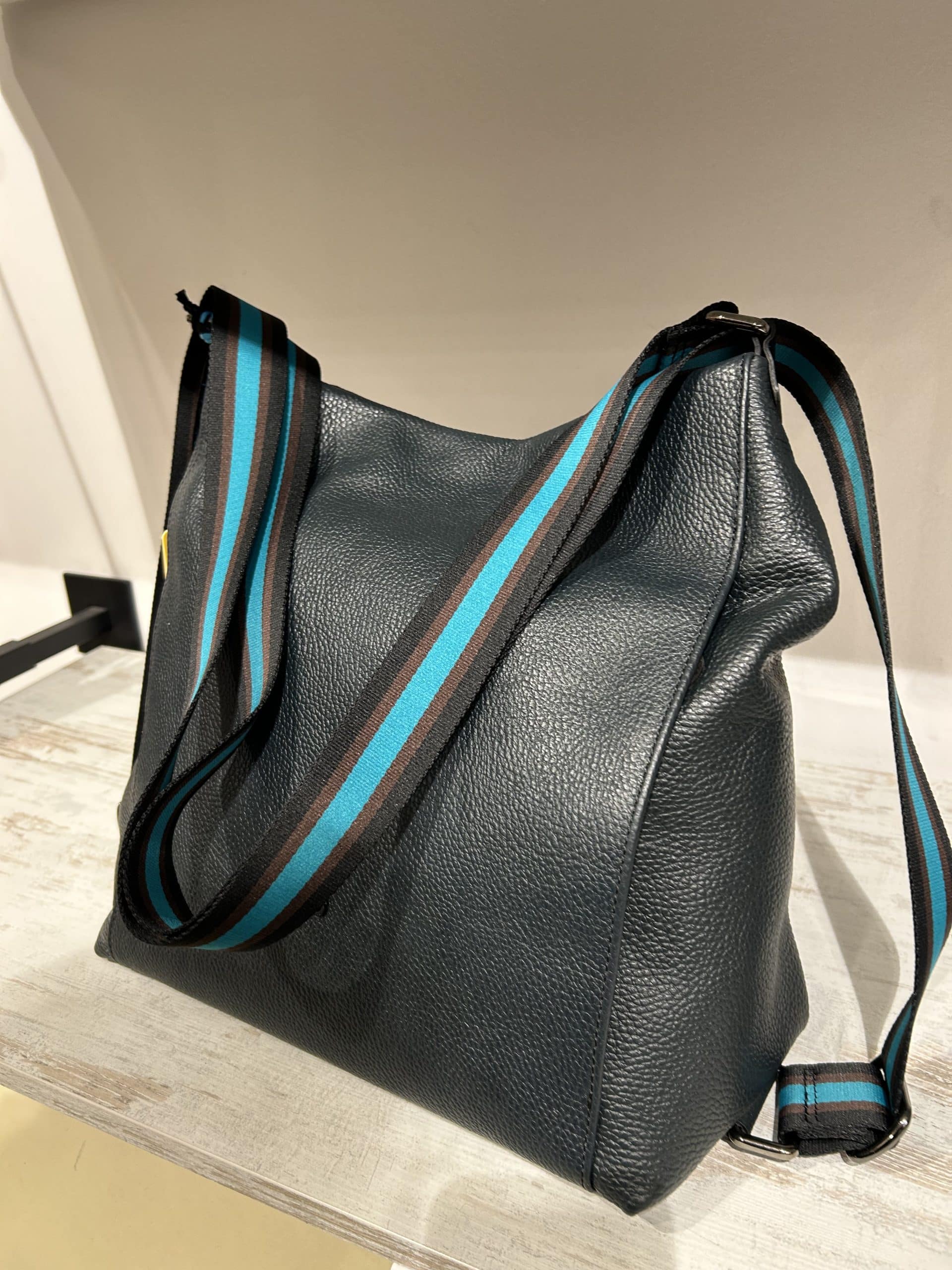 La linea “Icon Black” icona di Gabs è caratterizzata da bottone nero, zip di colore turchese e tracolla a nastro. Con la sua forma spaziosa, questa borsa è ideale per chi cerca un’opzione versatile e alla moda. • Interno Foderato • Tasca interna con chiusura a zip e due tasche porta oggetti • Realizzato in pelle di vitello opaca