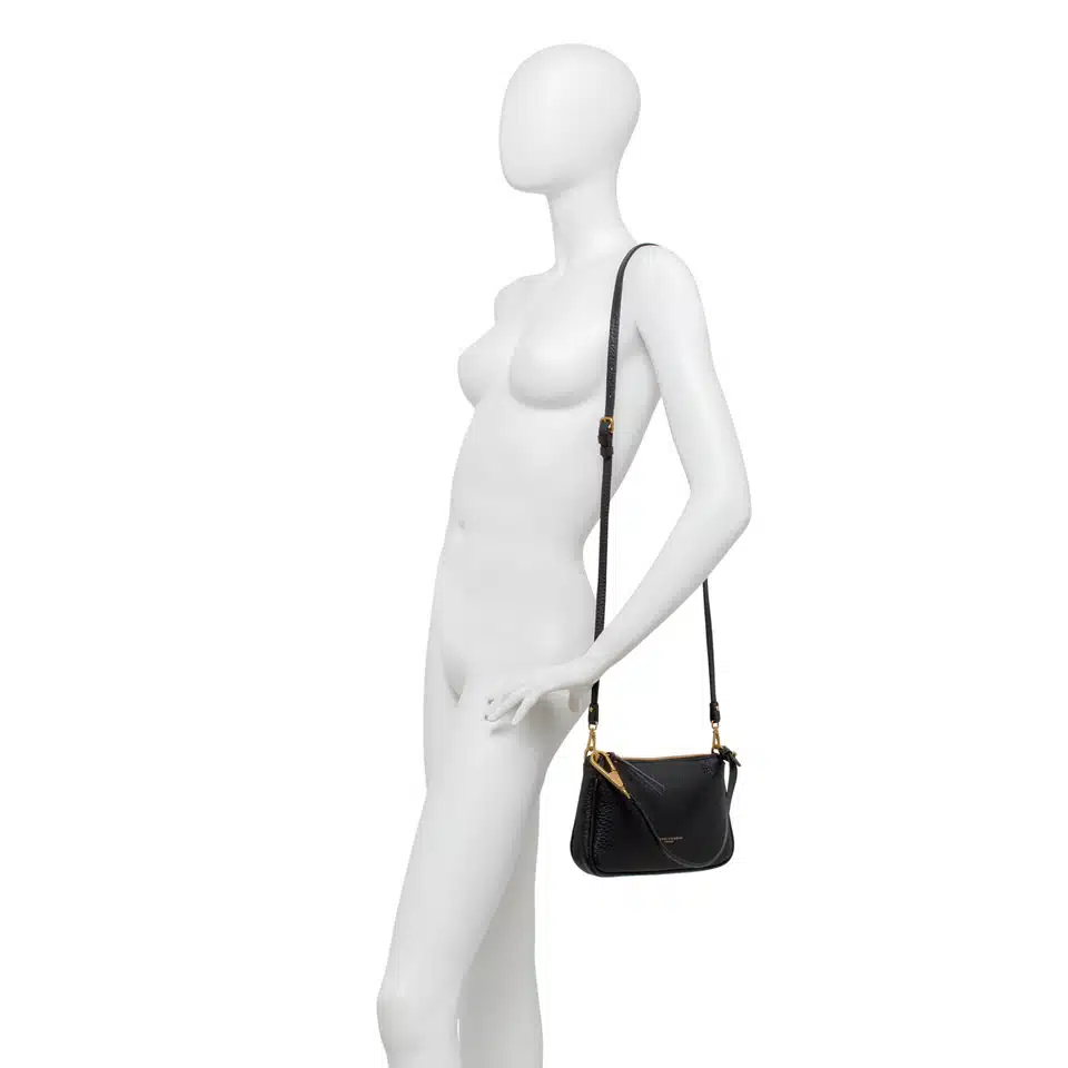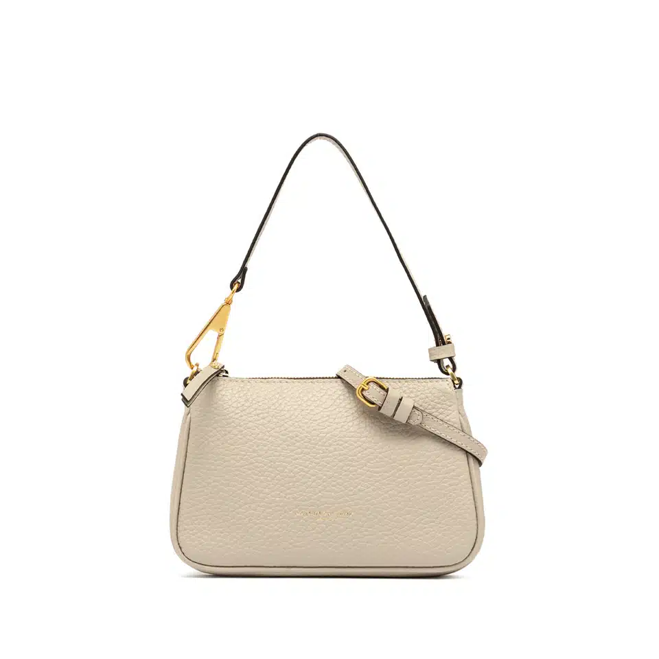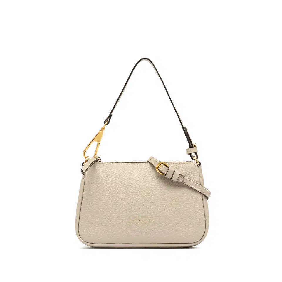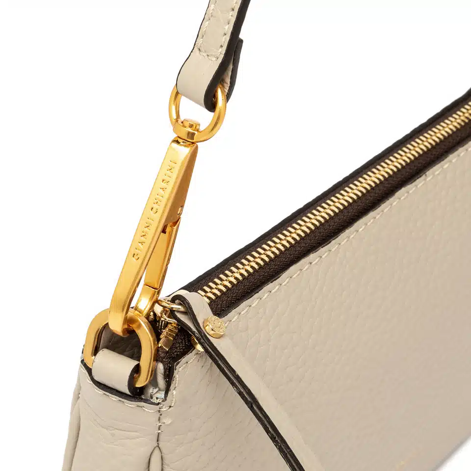 Semplice ed elegante, Brooke by Gianni Chiarini Firenze è realizzata in pelle grana maxi e impreziosita da una chiusura a zip e dal dettaglio del moschettone sul manico removibile. Completa di una tracolla aggiuntiva, è perfetta per un utilizzo quotidiano. Dimensioni: 23x14x4