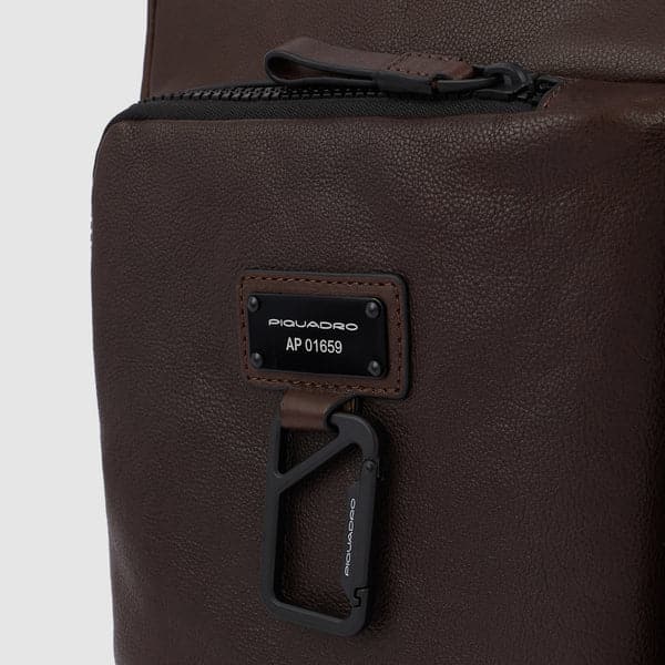 Realizzata interamente in pelle bovina pieno fiore conciata e tinta in botte, dalla mano morbida e dalla grana leggera e non uniforme. I dettagli come il logo micro iniettato, la placchetta in metallo nero con il numero di serie, il distintivo gancio frontale e le cerniere nere, rendono questa linea informale e giovanile.