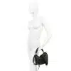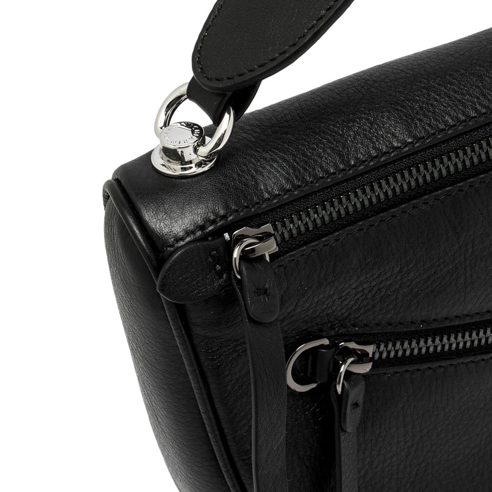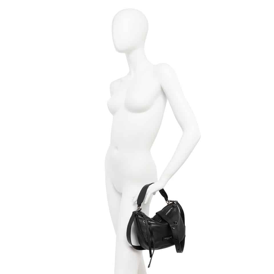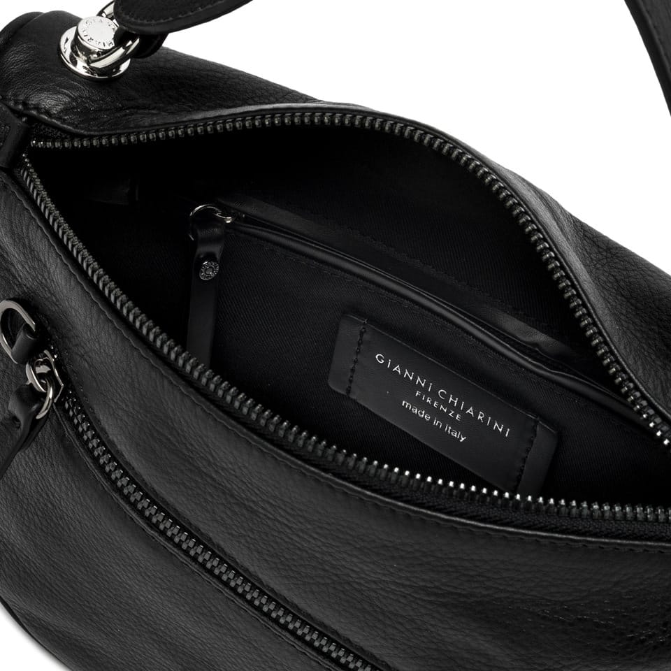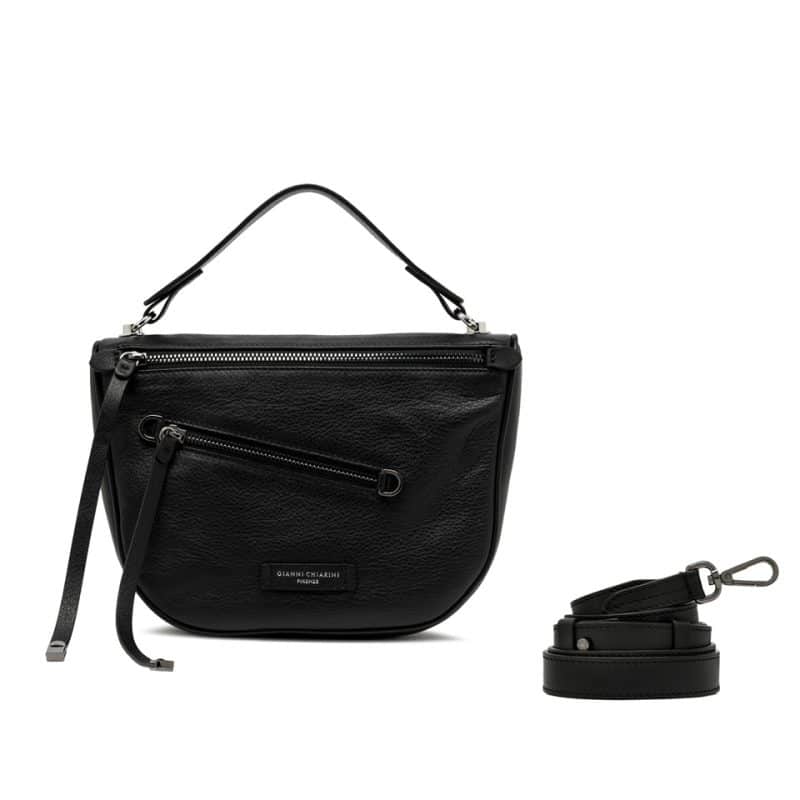 a nuova borsa Cindy by Gianni Chiarini Firenze, realizzata in pelle dall’effetto naturale e leggera, combina un look rock e urban con zip decorative e dettagli logati. Presenta una chiusura a cerniera, un manico in tono per l’uso a mano o a spalla e una tasca frontale con zip. Completa di tracolla removibile per l’utilizzo crossbody, è perfetta per chi cerca uno stile audace e ricercato. Dimensioni: 26×17,5×7 cm.