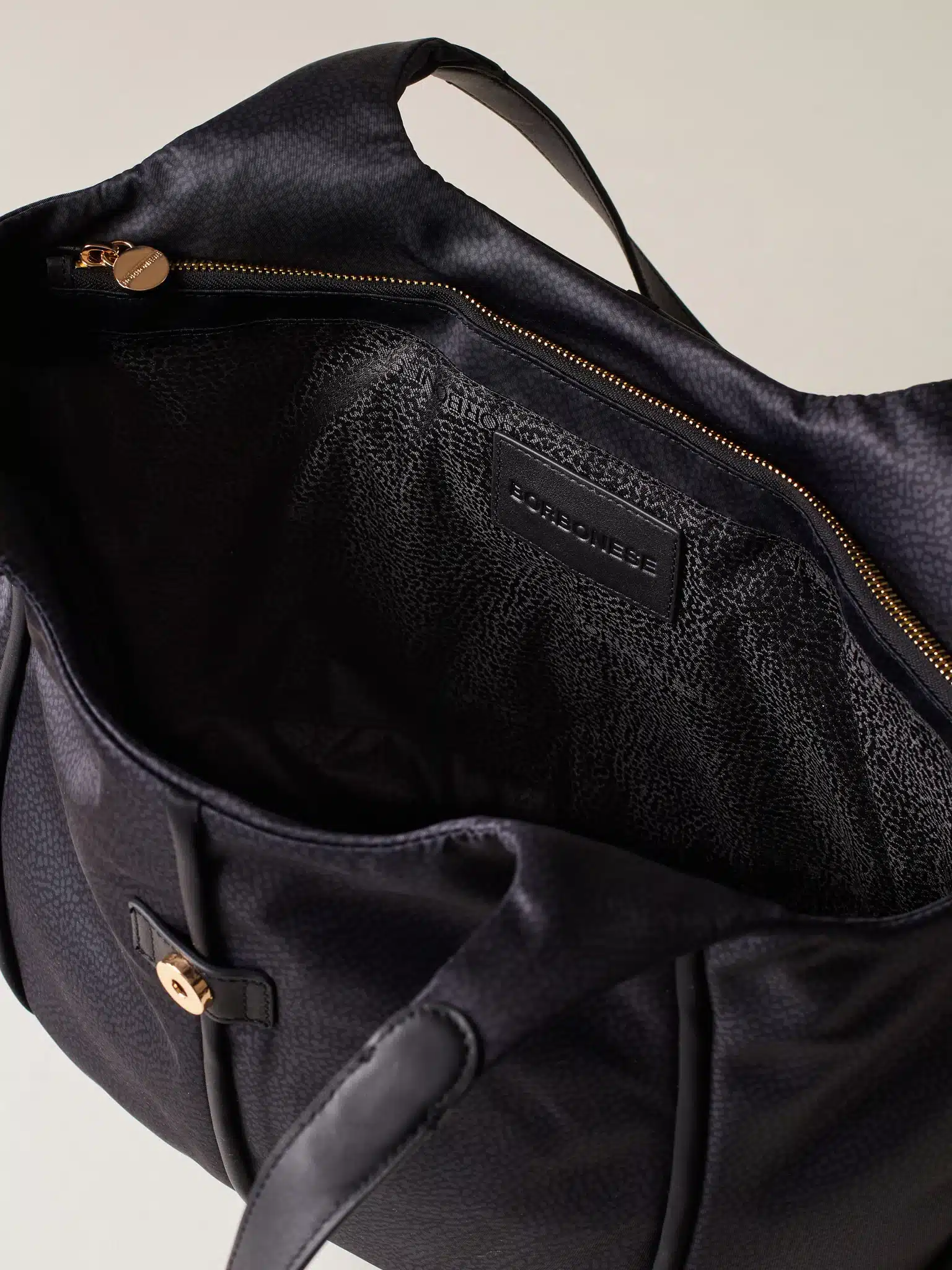 - Una tasca interna chiusa con zip in metallo con tirazip che riprende la vite logata