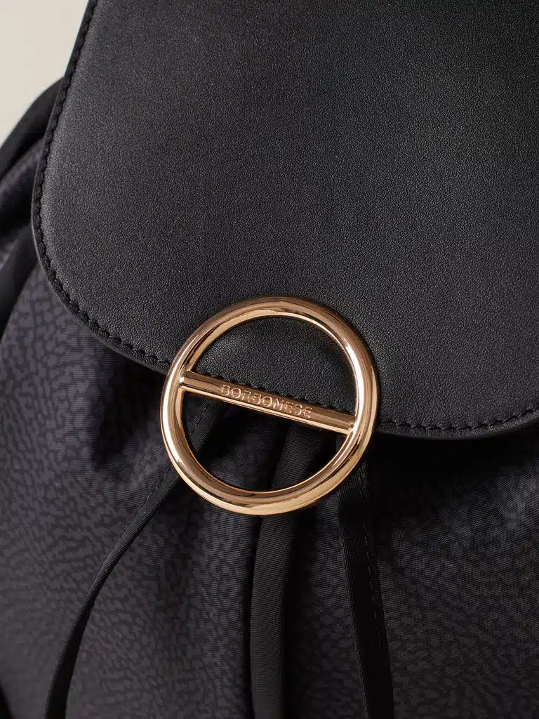 - Dettagli in pelle e profili in nylon unito