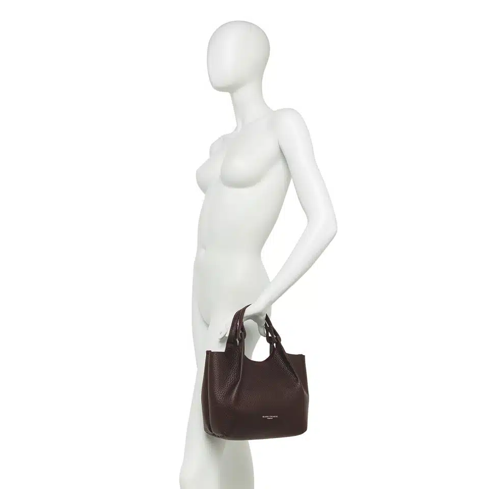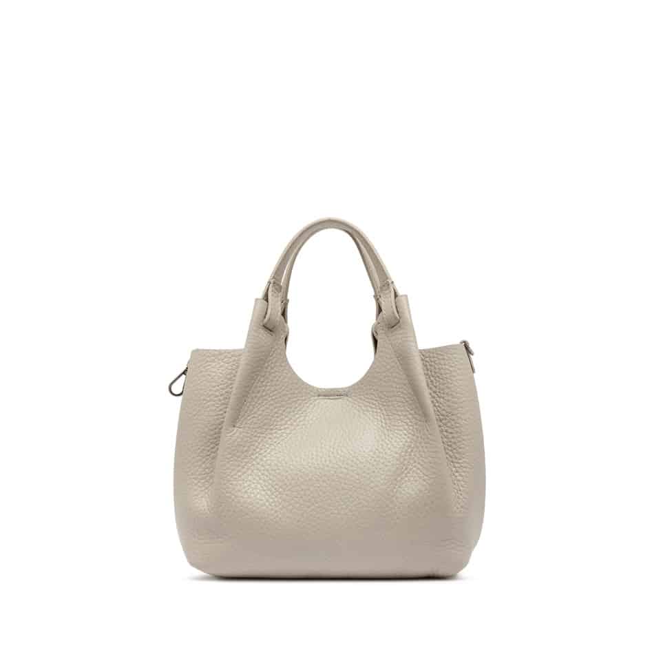 L’icona del brand DUA è caratterizzata da un design semplice al contempo contemporaneo. Realizzata in pelle double grana maxi, è la borsa perfetta per esaltare ogni look. Due manici in pelle in tono e una chiusura con magnete. Dotata di una sottile tracolla in pelle. Dimensioni: 24x27x12 cm.