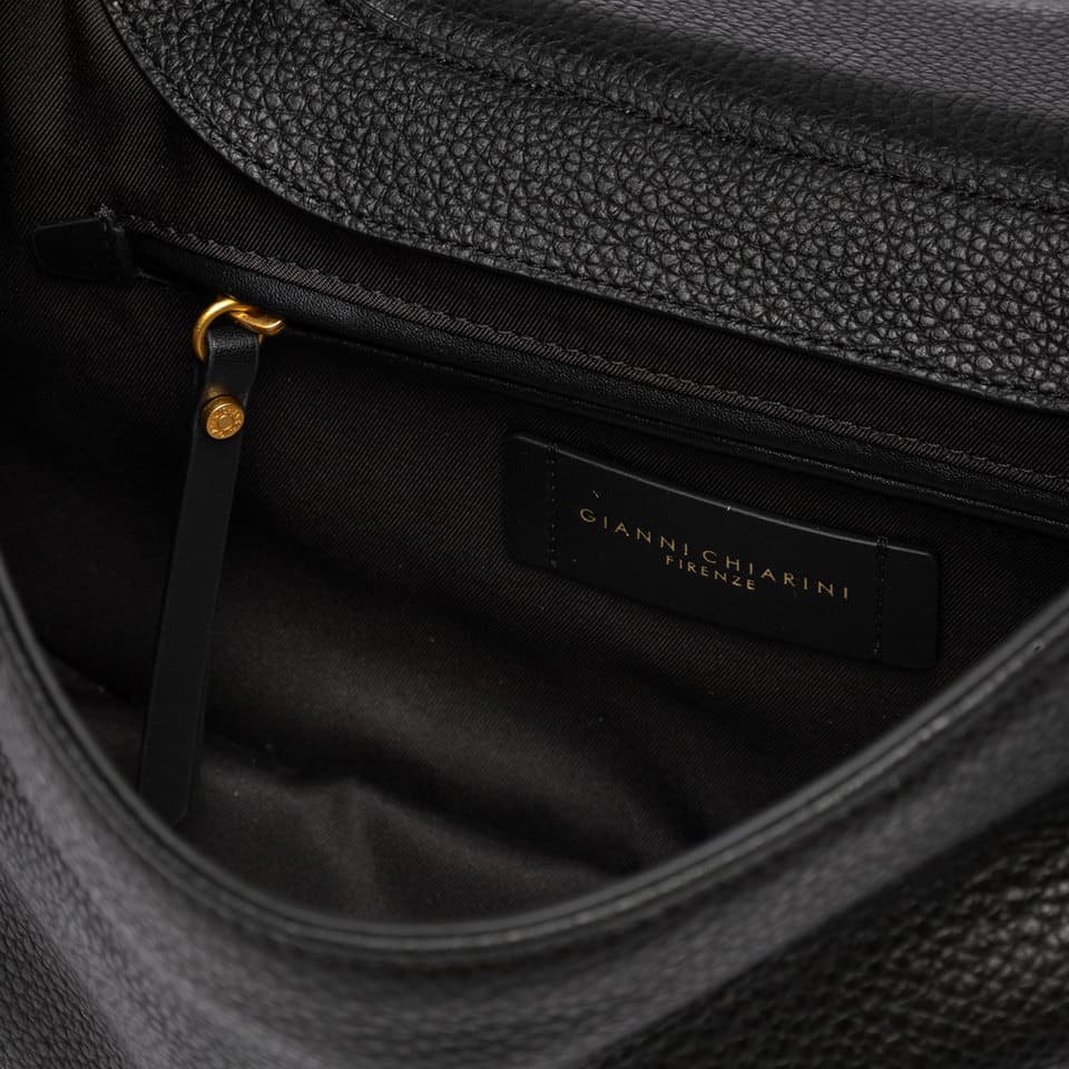 Edith è la nuova borsa versatile e sofisticata, ideale per chi cerca praticità senza rinunciare allo stile. Realizzata in morbida pelle martellata, presenta due comparti distinti per una gestione ottimale degli spazi. Dotata di chiusura con patta in pelle, include una tracolla regolabile e removibile per un uso crossbody e un comodo manico superiore per una portabilità a mano.