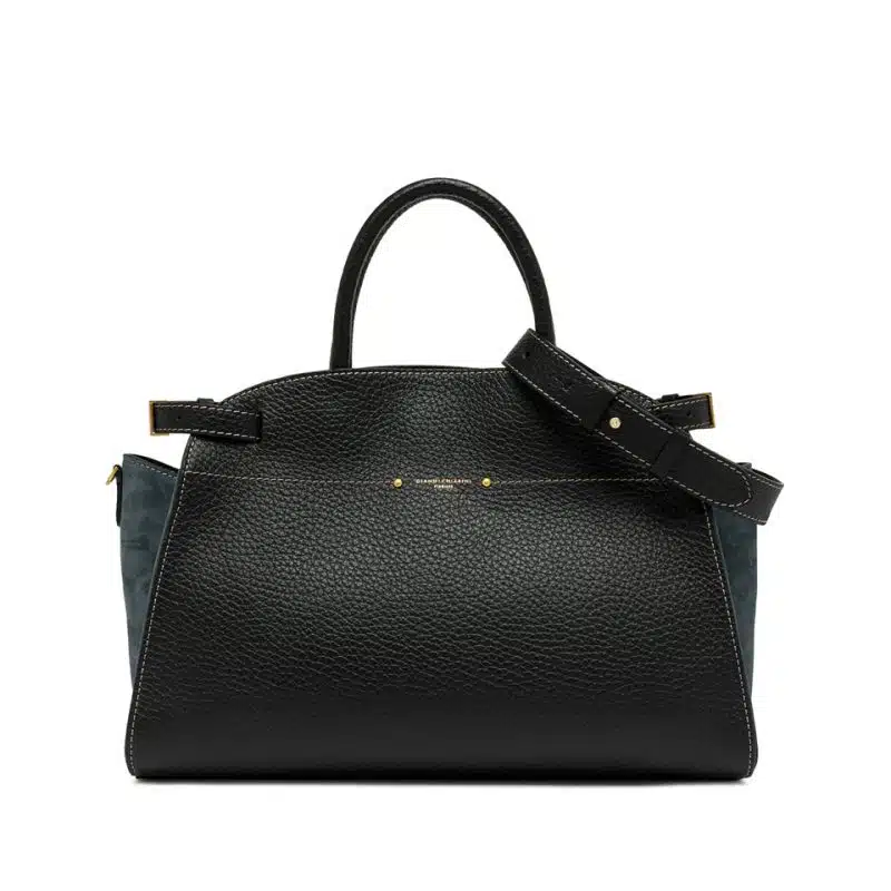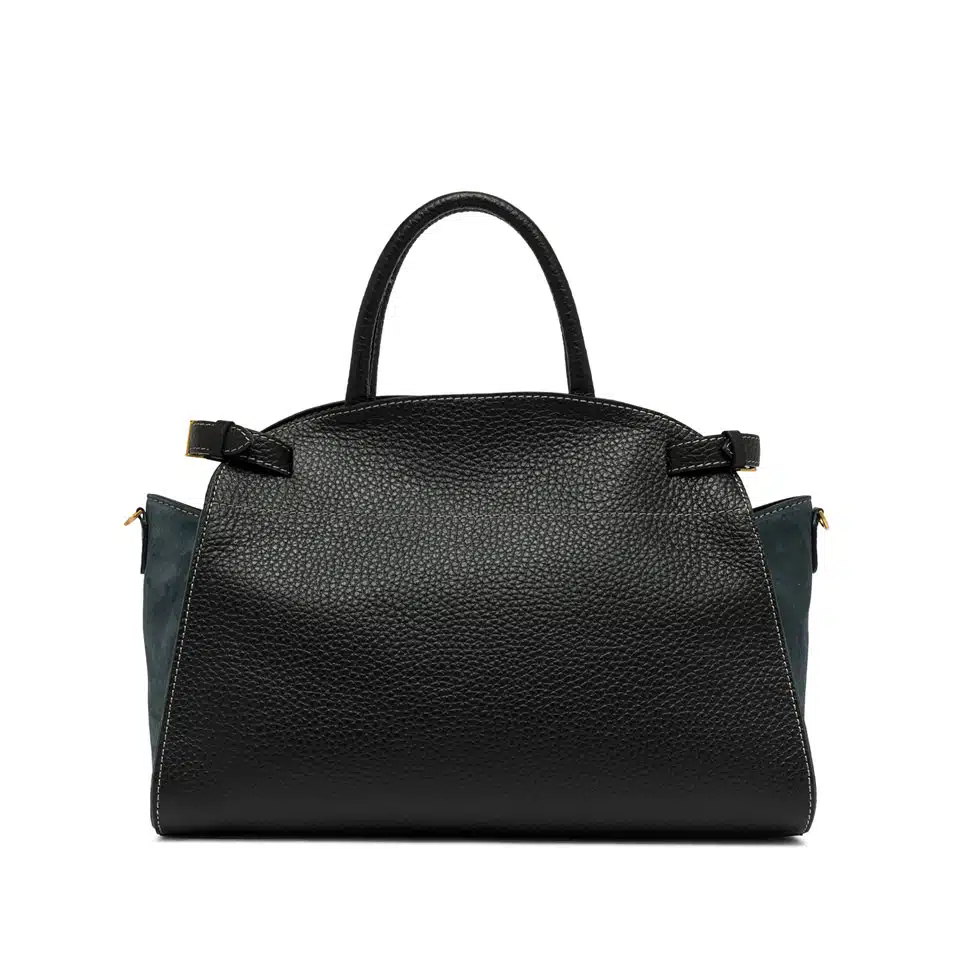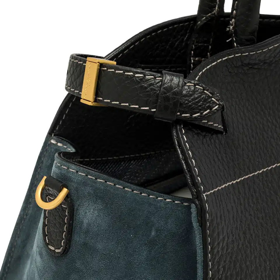 Farah by Gianni Chiarini Firenze è realizzata in pelle grana maxi, arricchita da fianchi esterni in suede tono su tono. Caratterizzata da una forma trapezoidale, presenta dettagli iconici che ne esaltano il design. Arricchita da un cinturino esterno e da una chiusura in metallo, per un tocco contemporaneo e unico. Dotata di due manici superiori in pelle e di una tracolla removibile, può essere indossata anche crossbody.