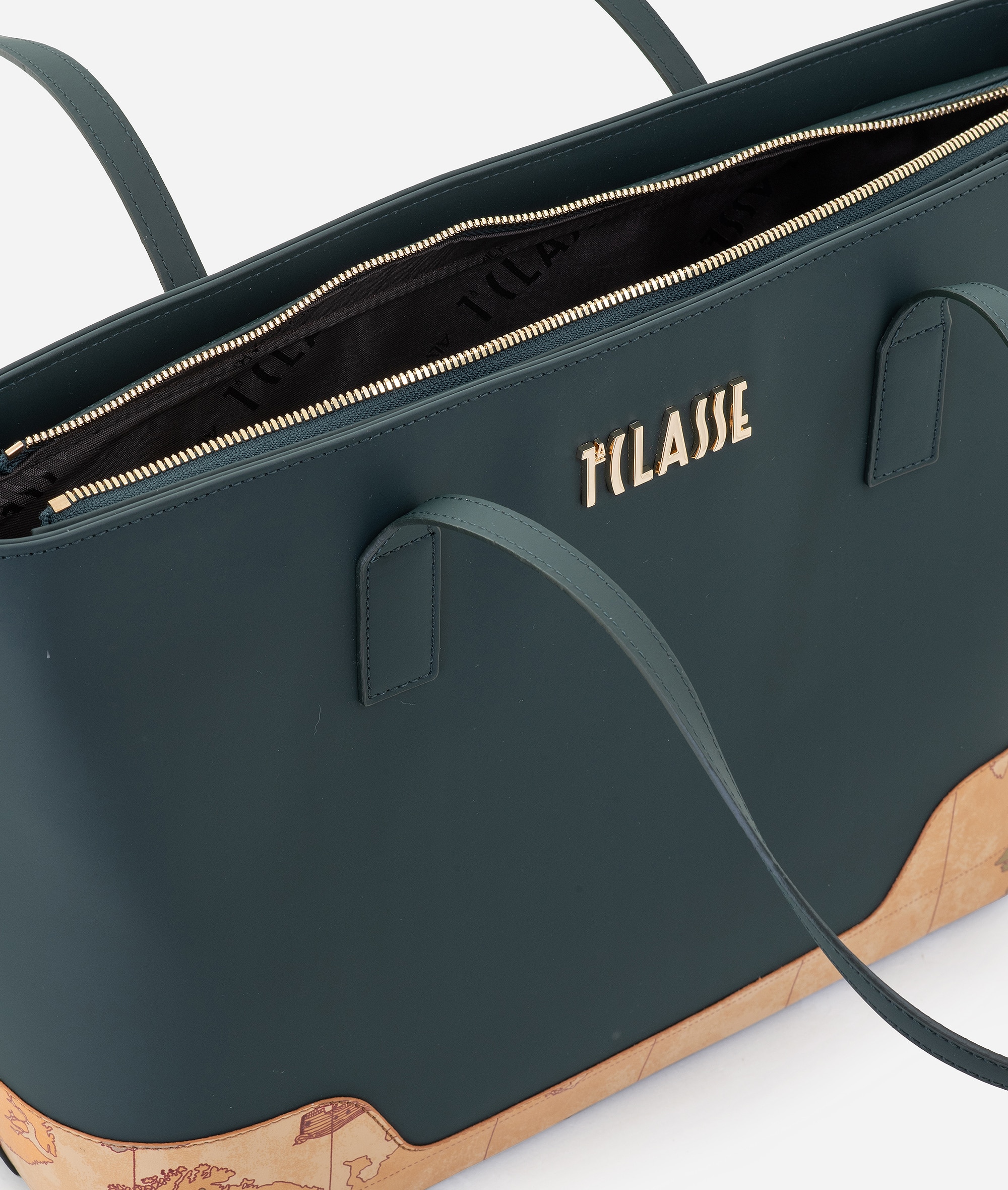 Capiente e funzionale grazie al morbido tessuto gommato, la borsa shopping Frost Geo si arricchisce dell’ampio inserto in tessuto effetto nappa stampa Geo Classic sul fondo: in alto, il maxi logo 1á´¬ Classe in oro chiaro ed eleva lo stile urban con la classe iconica del brand. I volumi si completano di tre tasche interne, mentre la raffinata tonalità Verde Bottiglia la rende perfetta per donare un tocco di colore ai look invernali.