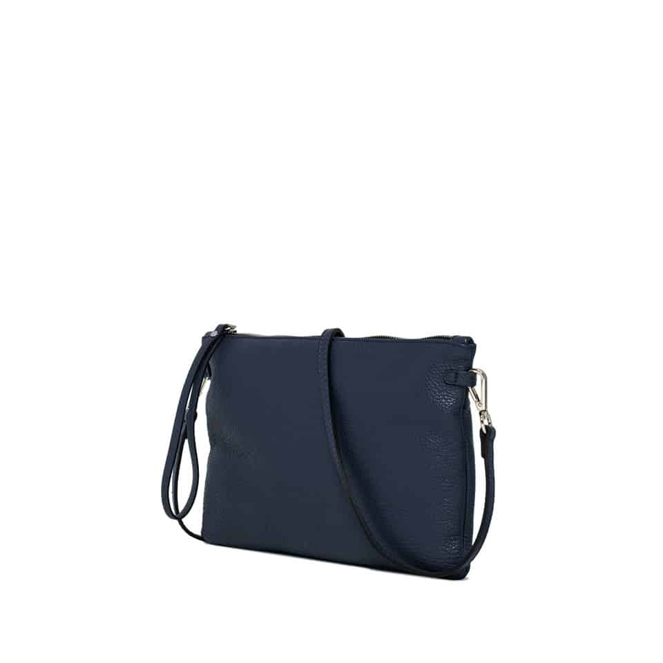 Hermy in grana dollaro, clutch con zip in testa. Tracolla in pelle di servizio.