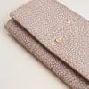 Portafoglio Large realizzato in nylon OP riciclato e pelle. La vite stilizzata, simbolo del brand, funge da bottone a pressione per la chiusura della pattina. L’interno, foderato in tessuto jacquard con schermo anti-clonazione carte, ha portamonete con zip ed è ricco di scomparti e ben 14 taschine portatessere. Le metallerie sono in galvanica oro chiaro.