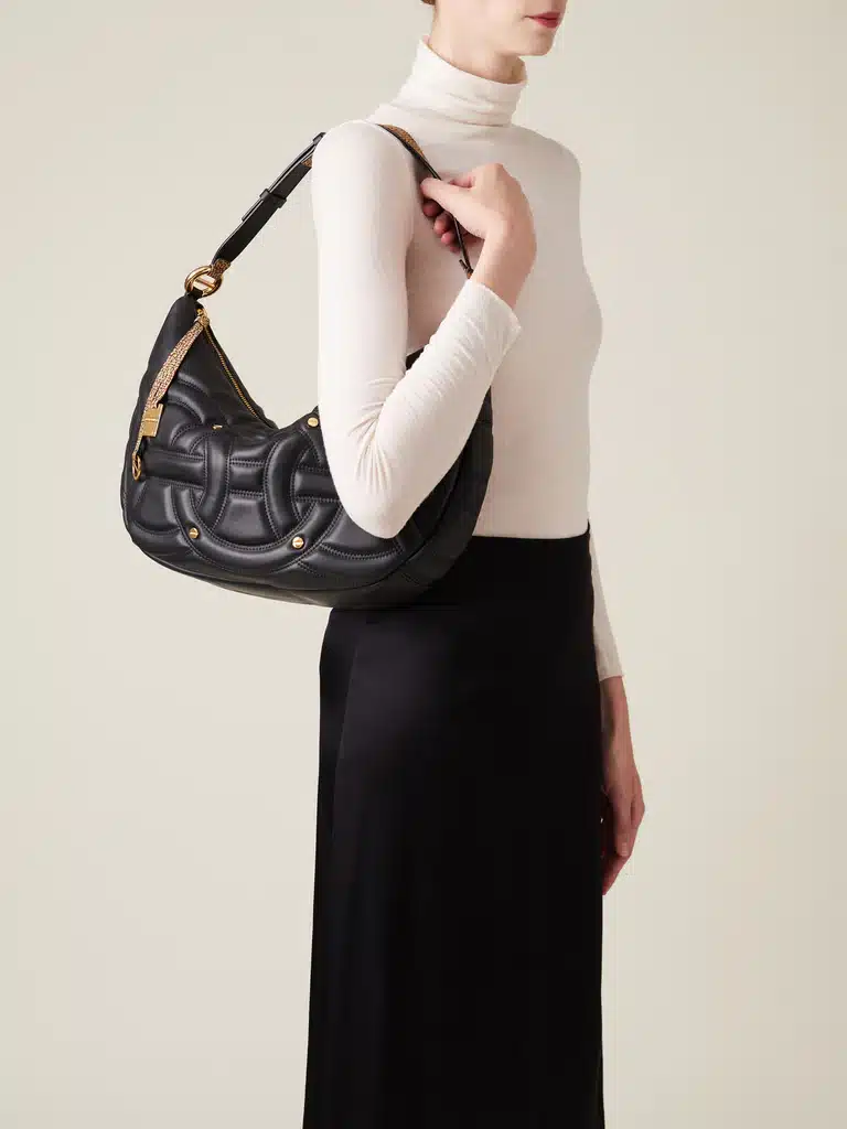 - Tirazip in Camoscio Op con elementi decorativi a vite e placchetta logati