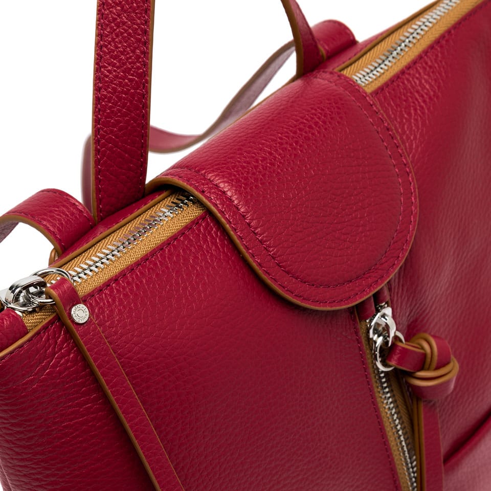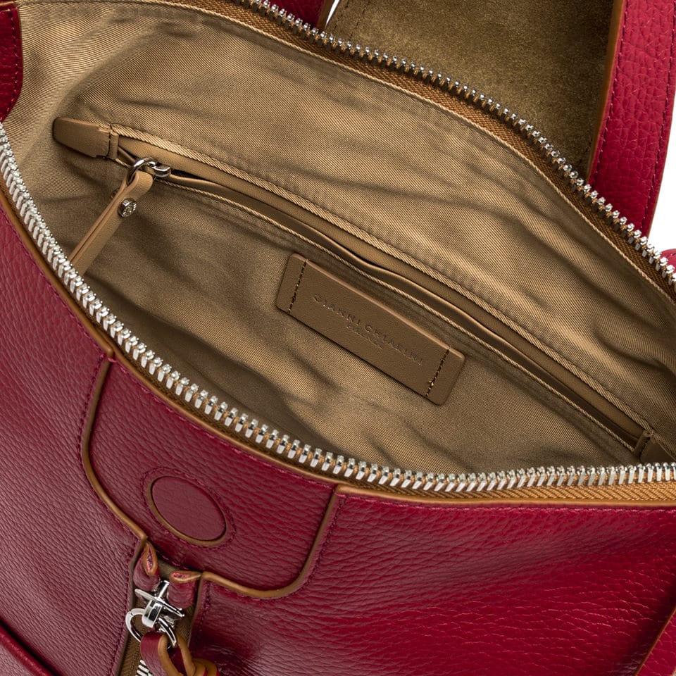 Lo zaino Giada Gianni Chiarini in pelle martellata è l’accessorio perfetto per chi non vuole rinunciare ad un tocco chic anche in città . Tasche piatte sul fronte. Apertura frontale con zip. Chiusura con magnete e cerniera. Manico e spallacci regolabili in pelle in tono. Tasca con zip e tasche multiuso interne.